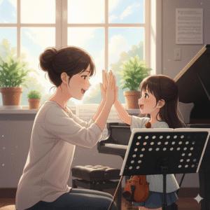 こんばんは、ヴァイオリンの大久保優香です🎻 今日は、小3のSちゃんのレッスンでした。 Sちゃんが、ヴァイオリンを習い始めて1年半ほど経ちました。 センスがよく、弾くときの姿勢も自然ときれいにできてしまう子です✨️ そんな […]